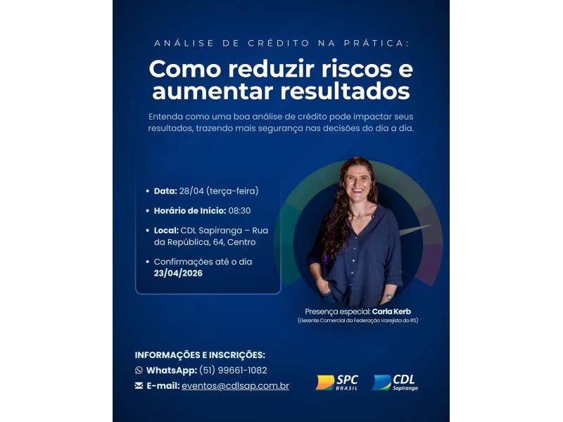 A qualificação na tomada de decisão financeira estará em pauta na terça-feira, 28 de abril, quando a Câmara de Dirigentes Lojistas de Sapiranga ...